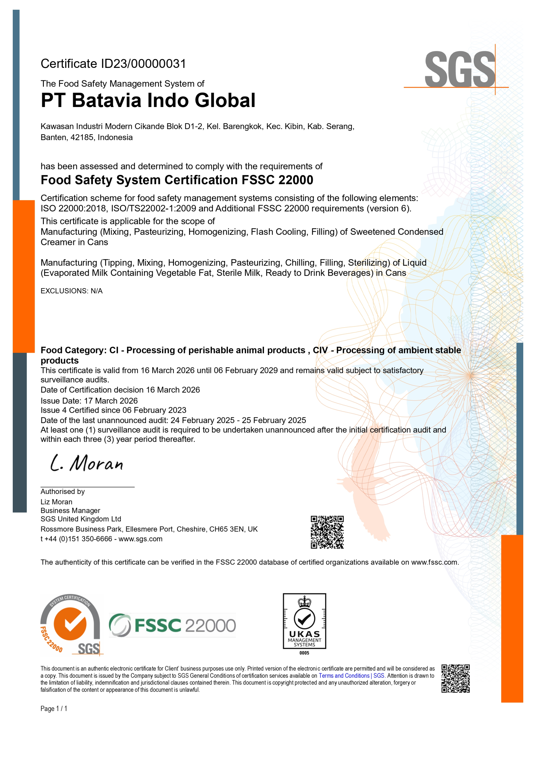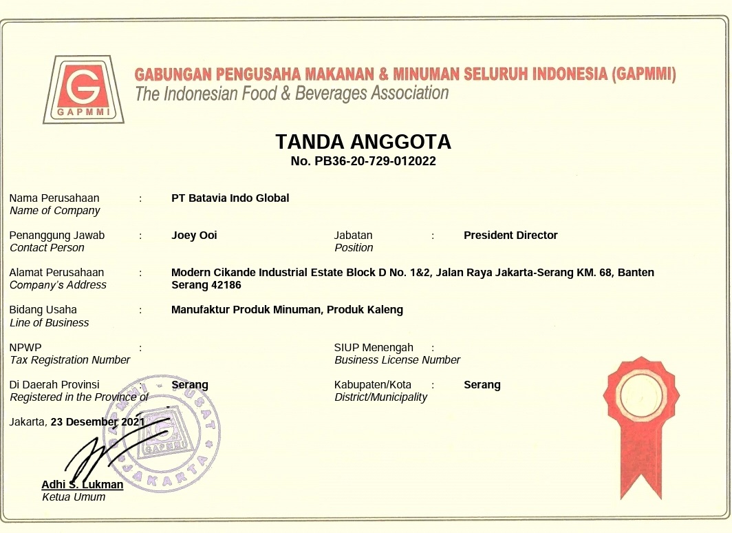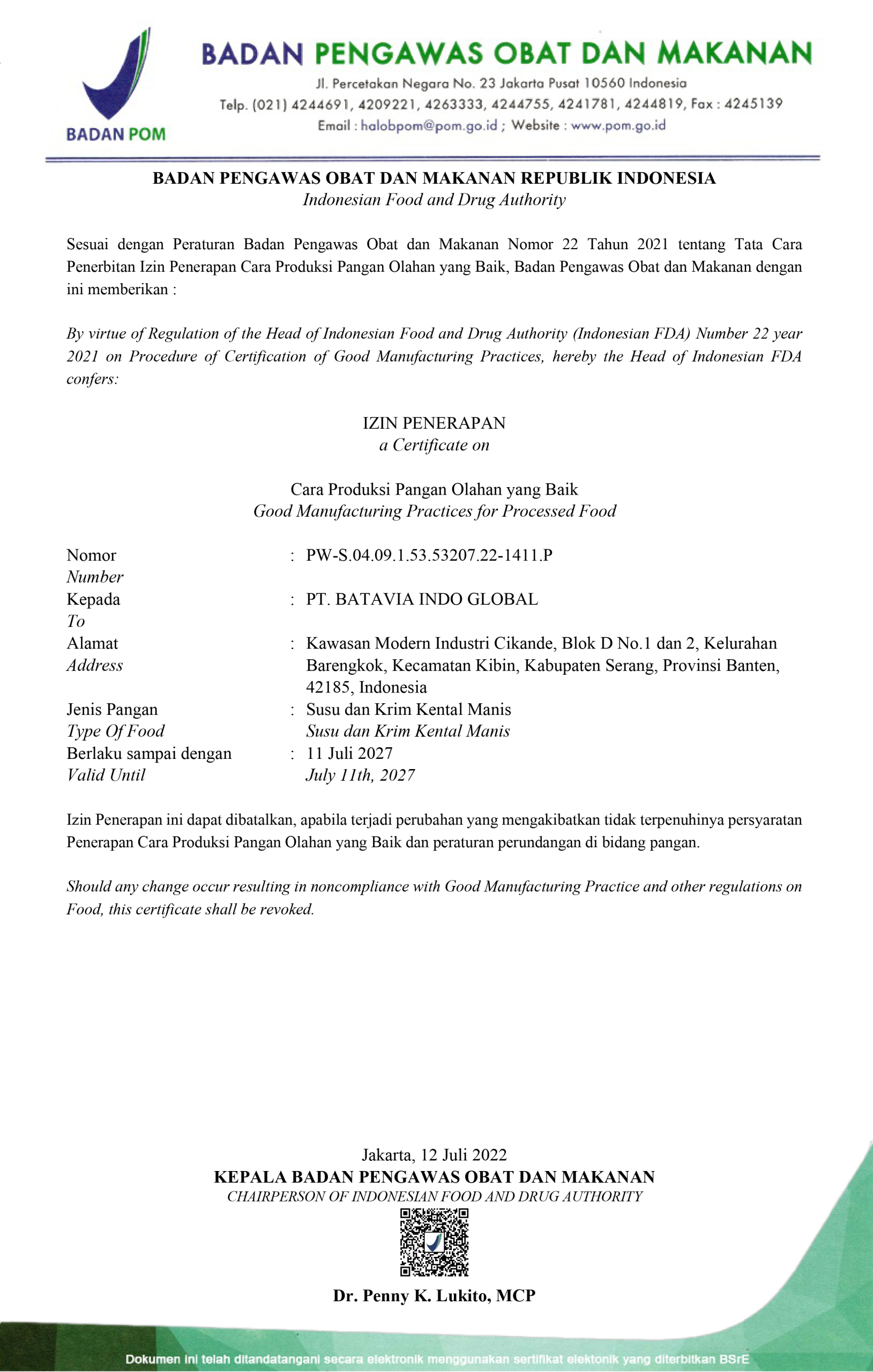 Food & Drug Agency (BPOM) Certification